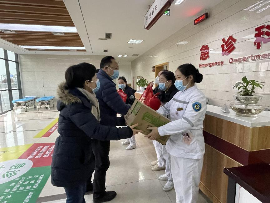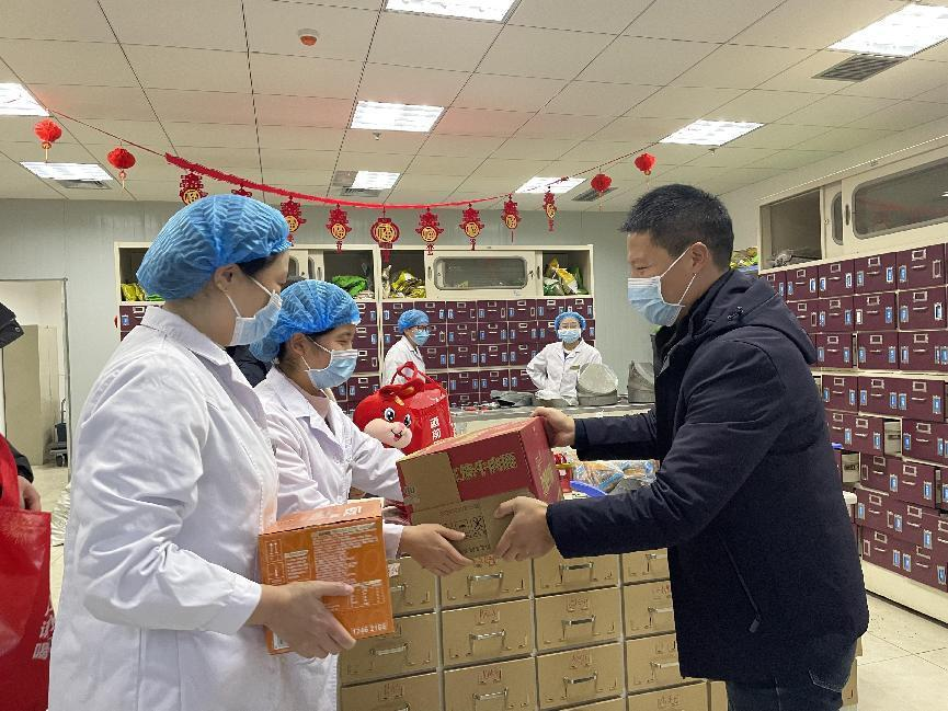 “這兩天沒有前段時間忙了吧,你們一定要合理安排休息,抽空多陪陪家人。2022年困難重重,但我們都一一挺了過去,2023年我們團結一心,繼續(xù)為醫(yī)院發(fā)展添磚加瓦?!痹谥兴幏?,曹大春院長將新春禮品一一送到職工手上,并鼓勵他們在新的一年大展宏兔。